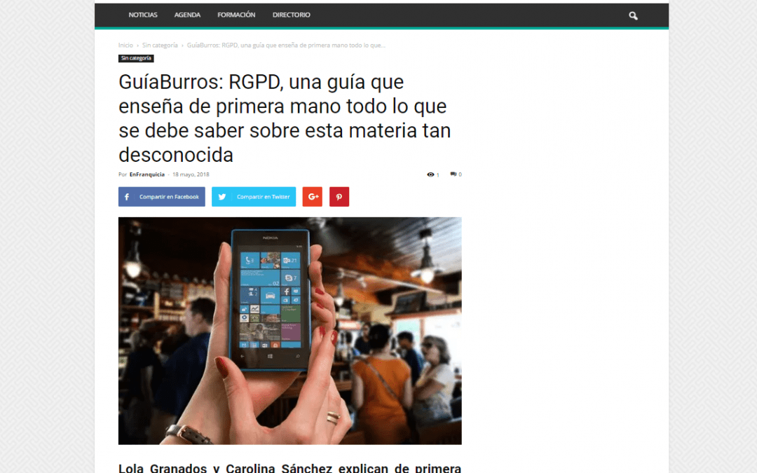 El GuíaBurros: RGPD y sus autoras, Carolina Sánchez y Lola Granados, en el medio online especializado Colaborum